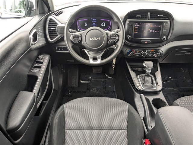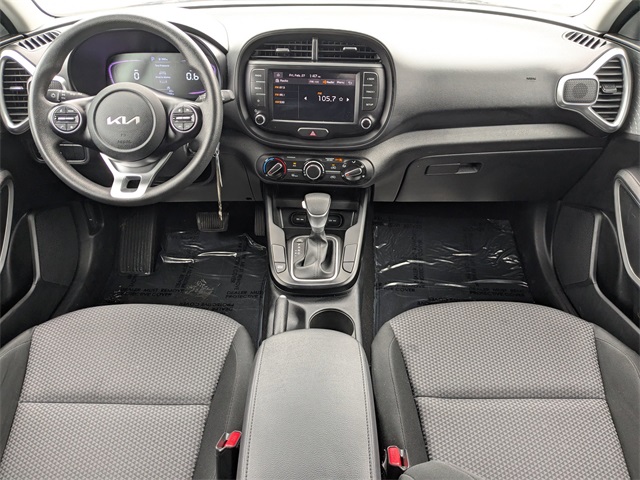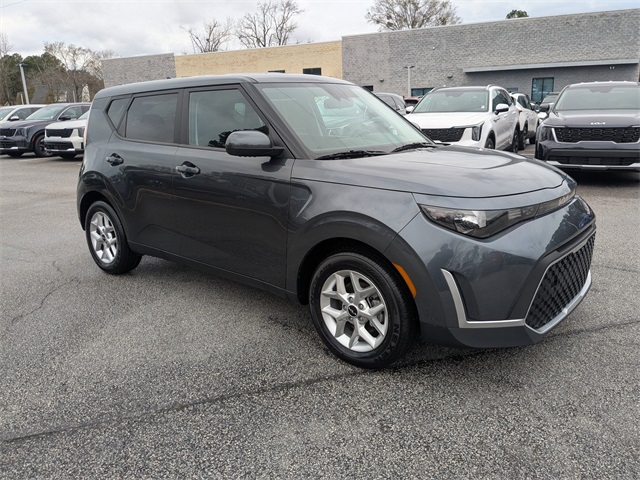 Gravity Gray 2024 Kia Soul S FWD CVT 2.0L I4 DOHC ABS brakes, Alloy wheels, Compass, Electronic Stability Control, Emergency communication system, Front dual zone A/C, Illuminated entry, Low tire pressure warning, Navigation System, Remote keyless entry, Traction control.
